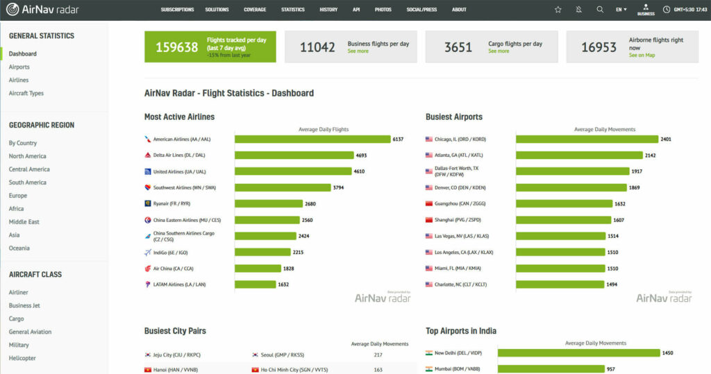 From takeoff to touchdown, follow every journey across the globe. Visualize flight statistics, unlock a year of historical data, and customize maps with 40+ filters. Listen to live ATC, replay flights, or experience immersive 3D cockpit views instantly – all in one platform.